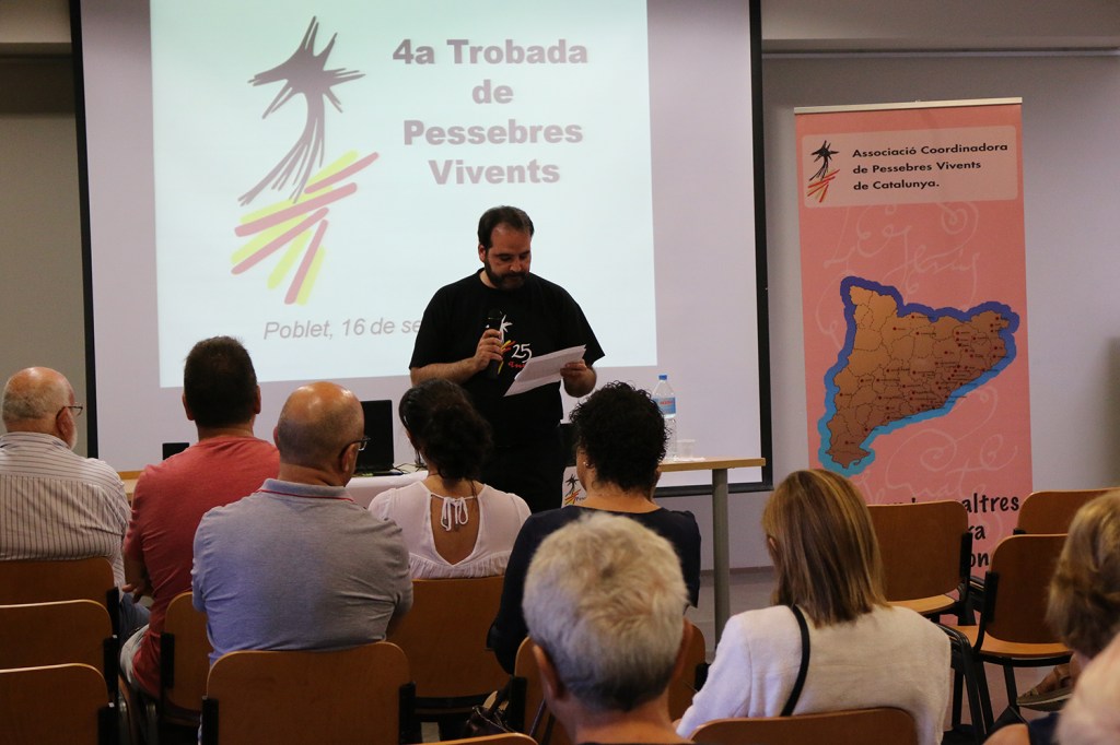 Una quinzena de Pessebres Vivents de Catalunya han participat aquest diumenge a la 4a Trobada organitzada per la Coordinadora que aglutina les entitats organitzadores dels pessebres catalans, al Monestir de Santa Maria de Poblet. Després d’una primera edició a Corró d’Avall i les dues següents al Monestir de Montserrat, aquesta vegada els principals responsables dels Pessebres Vivents d’arreu del territori català han volgut trobar-se a la Conca de Barberà a iniciativa del Pesssebre Vivent de l’Espluga. La jornada ha estat dedicada a la formació prèvia a la nova temporada de representacions nadalenques.