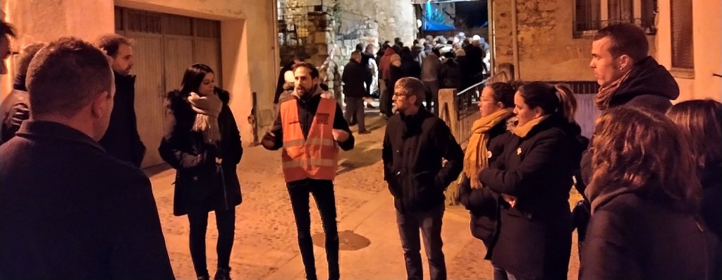 Després d’accedir pel recorregut d’entrada, la zona de rebuda i del caldo, la projecció de benvinguda i la cua d’entrada, el coordinador del Pessebre Vivent, Xavier Lozano, va rebre els representants institucionals al carrer Penitents, on va narrar-los el relat d’aquest any i els va donar detalls del projecte cultural que envolta el Pessebre Vivent.