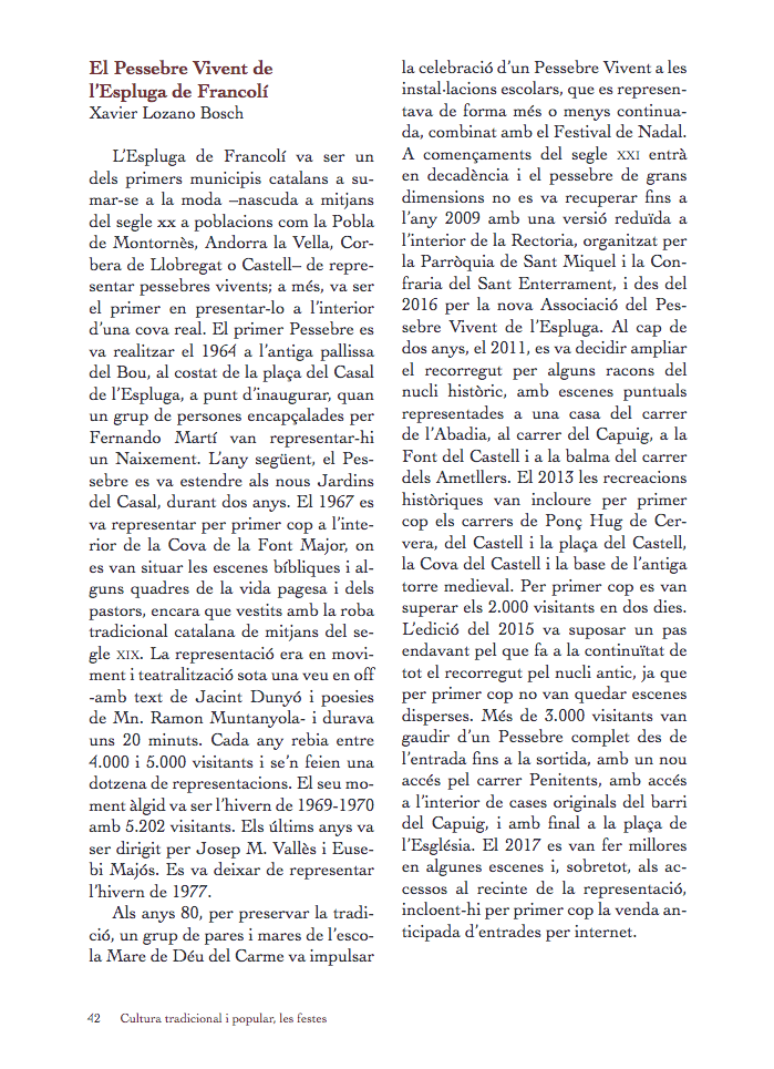 L’article està escrit pel periodista Xavier Lozano, coordinador del Pessebre de l’Espluga des de l’any 2009.
