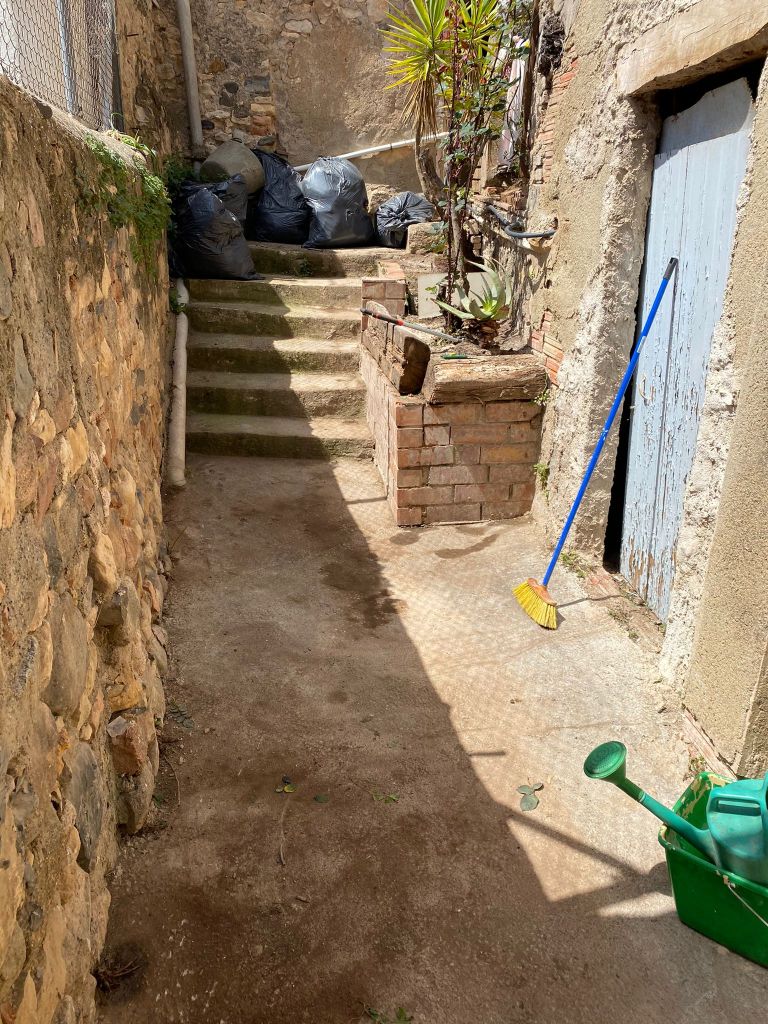 Treballs de rehabilitació d’un accés antic als baixos de Cal Sanjoan per l’escena del forma de pa. Neteja i trasllat d’escombraries a la deixalleria.