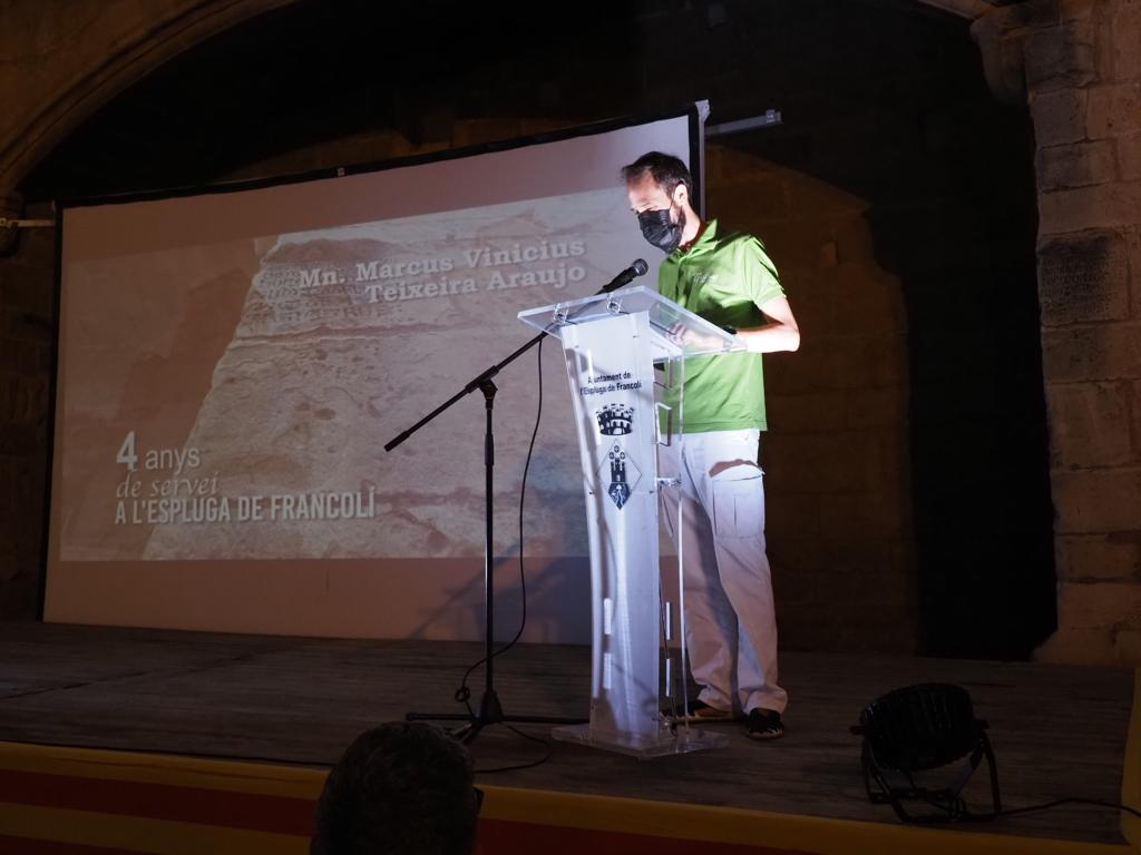 L’Associació del Pessebre Vivent de l’Espluga va sumar-se aquest divendres 1 d’octubre de 2021 a l’acte de comiat que l’Ajuntament de l’Espluga i la Parròquia de Sant Miquel Arcàngel van dedicar a Mn. Marcus Vinicius Teixeira Araujo, en agraïment per la seva dedicació activa, propera, oberta i generosa al municipi. Mn. Marcus ha estat destinat per l’Arquebisbat de Tarragona a les parròquies de Sant Joan, Santa Clara i Sant Pere de la ciutat de Tarragona després de quatre anys a les parròquies de l’Espluga, Vimbodí i Vallclara. El rector ha destacat per la seva peculiar implicació amb el teixit cultural i associatiu de la vila, en especial per la seva participació com a figurant del Pessebre de l’Espluga i com a actor dels Pastorets de l’Espluga interpretant el paper de sant Josep els anys 2017, 2018 i 2019.