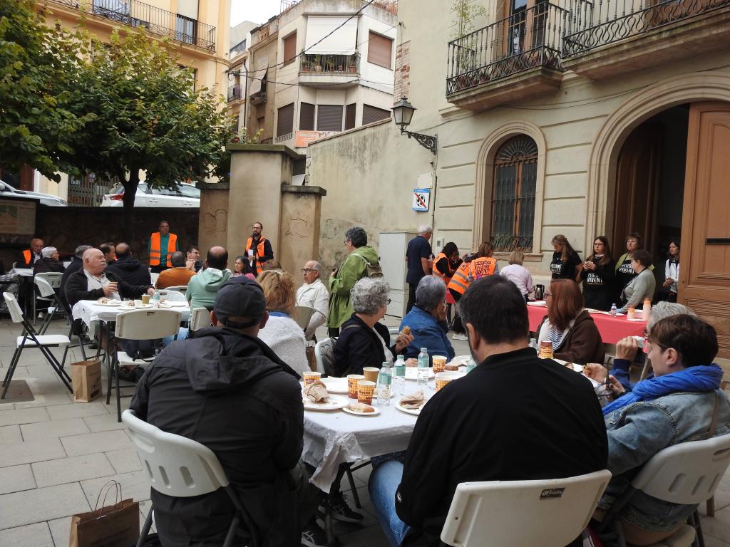 Hem gaudit d’un esmorzar de benvinguda a la plaça de l’Església amb entrepà amb botifarra blanca i negra de l’Espluga, vi de l’Espluga i coca de l’Espluga, gentilesa de Cal Tullet i preparat pel voluntariat del Pessebre de l’Espluga.