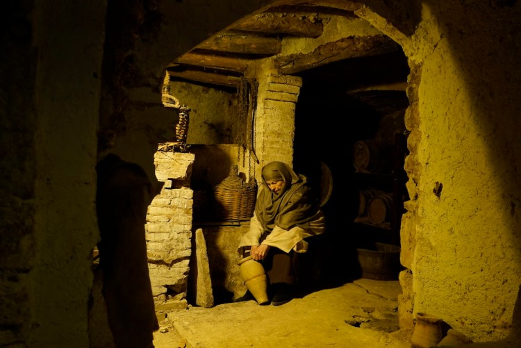 Els carrers del poble de Josep estan plens de menestrals i comerciants. Sembla que el fuster ja ha tornat de Betlem, on havia anat a censar-se. A la dreta, la filadora converteix la llana en fil per teixir. A l’esquerra, la terrissaire elabora amb delicadesa tot tipus d’estris per la cuina. Ceràmica elaborada a mà, com des de temps immemorials, fent cilindres d’argila, units un a un per elaborar la forma de la gerra. O esculpits al torn, en forma circular, fa més de 6mil que es fa. A les basses reposa el fang mentre a l’altell, l’aprenent ultima els detalls de les peces decorades que s’han cuit al forn de ceràmica.