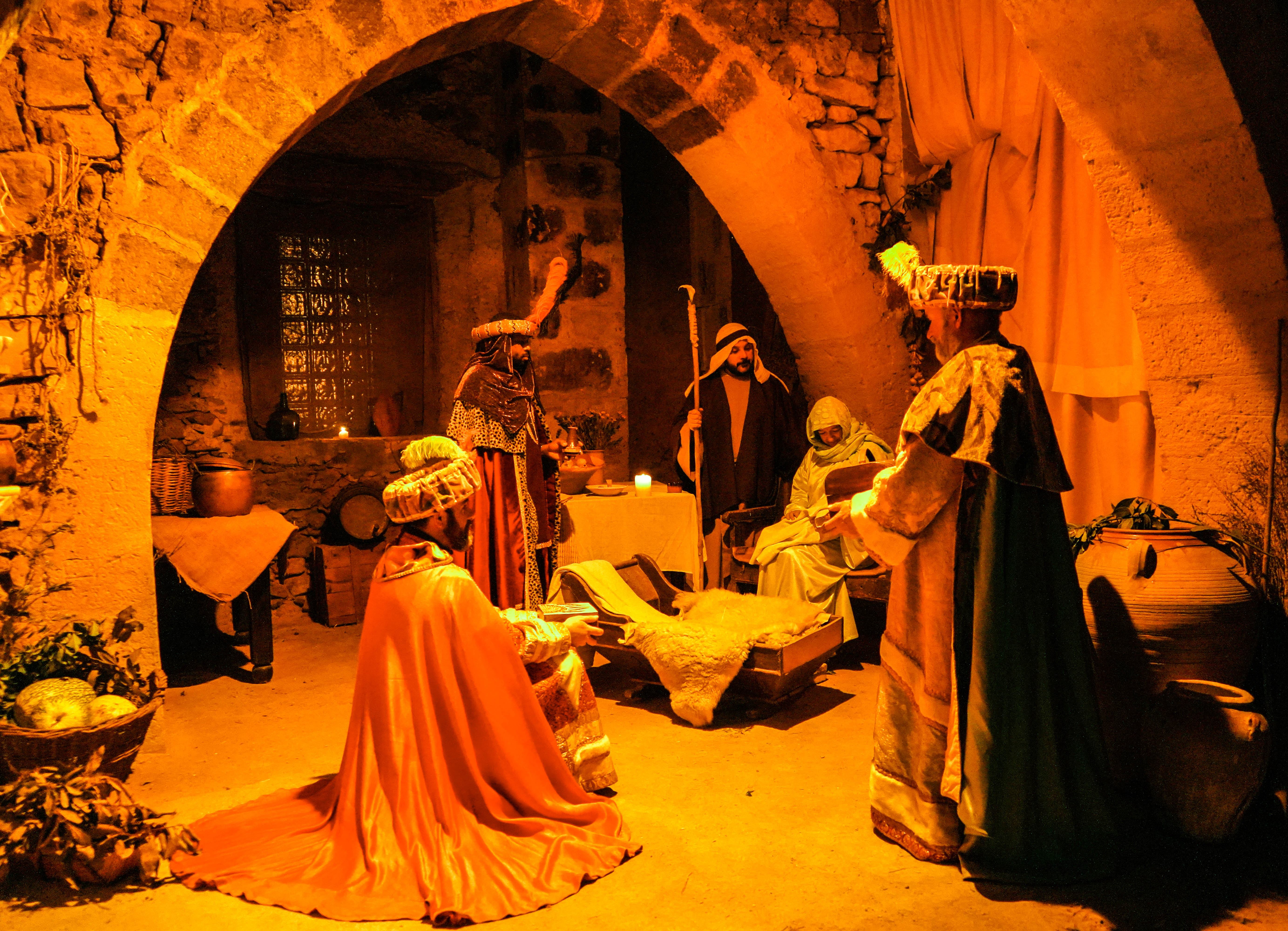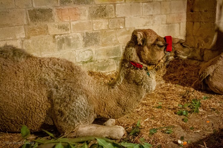 A la vora però, un visitants que arriben de lluny acaben de fer parada. Van carregats, amb camells, i vesteixen grans robes. Un petit grup de la gran cavalcada que ha arribat a la ciutat s’ha dirigit a la casa del fuster..